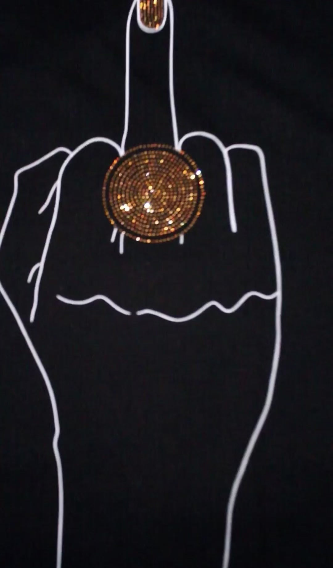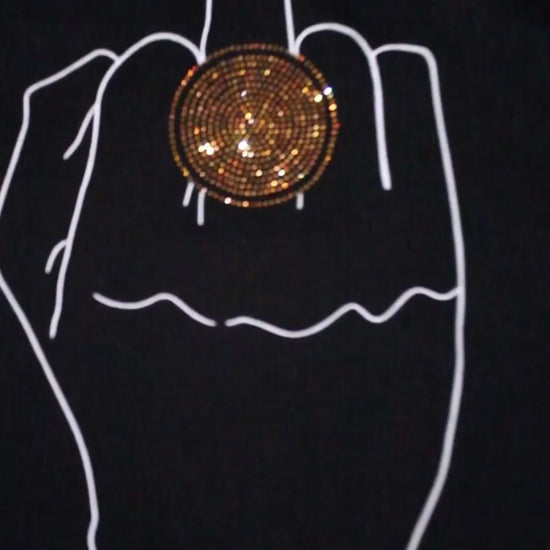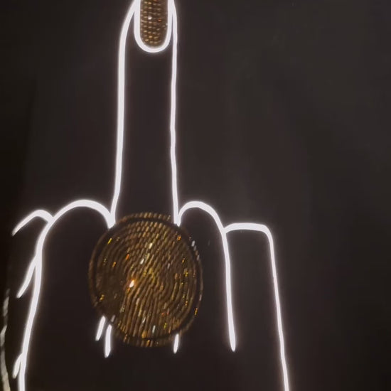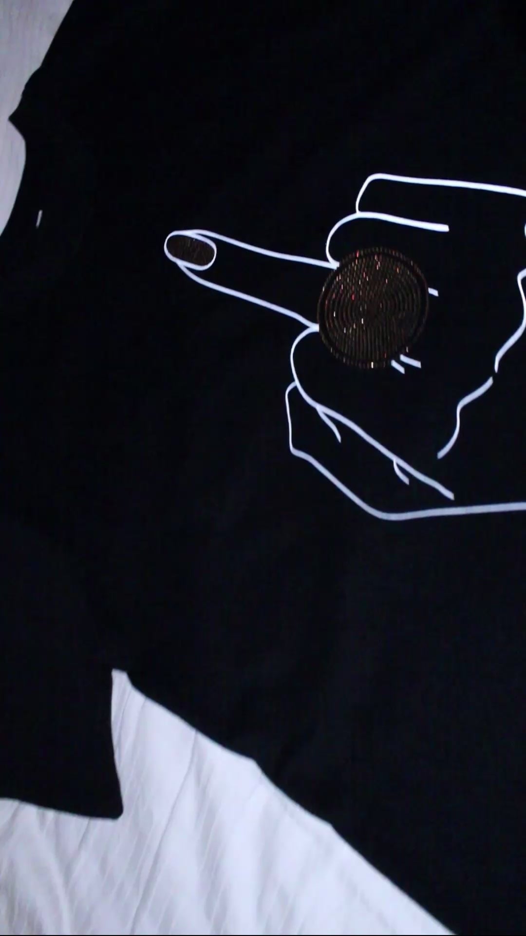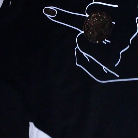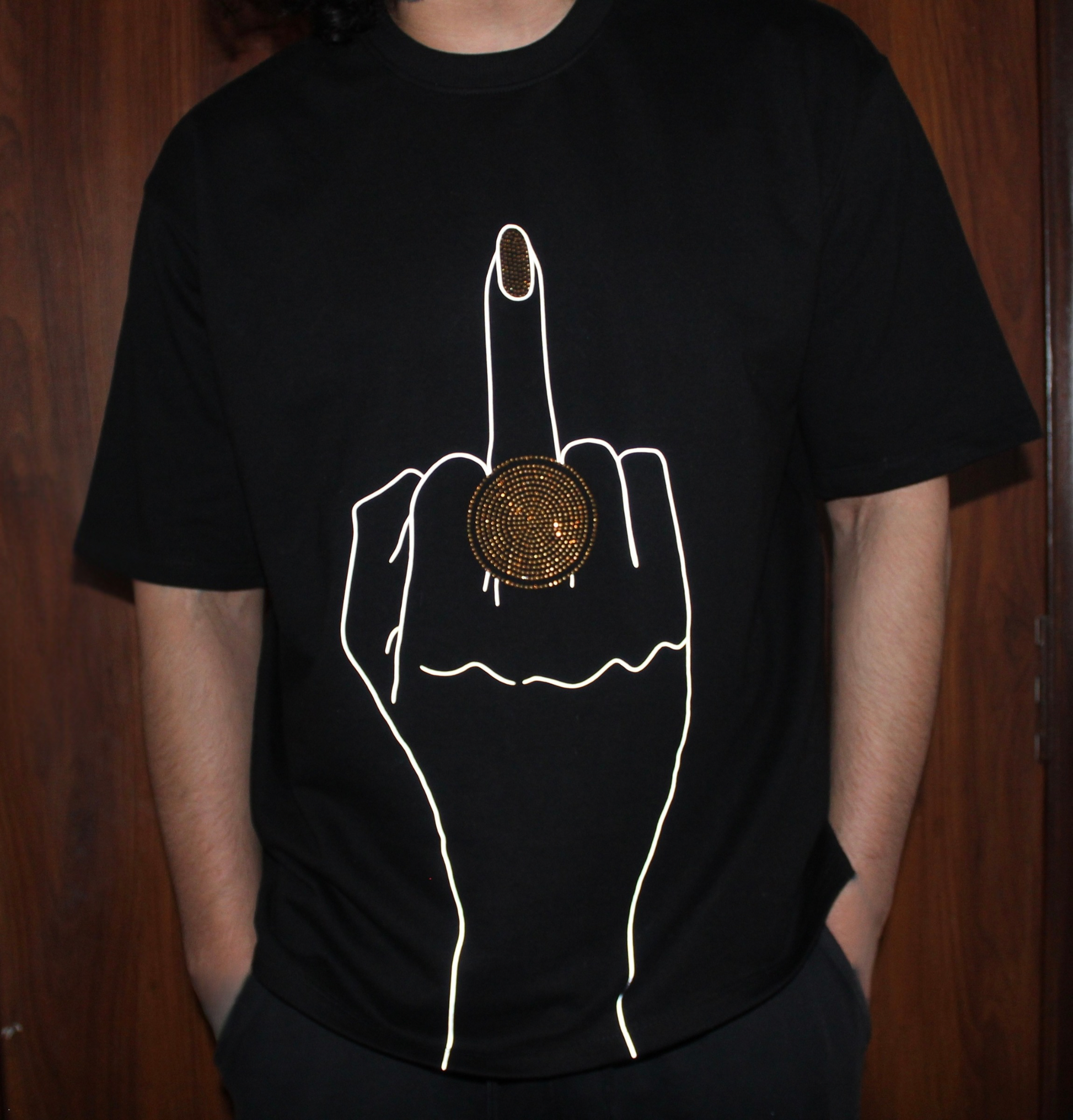 The artwork features a high-impact reflective print that lights up instantly with flash, giving you that nightlife glow. At the center sits our signature gold rhinestone detailing, made with top-grade stones that shine hard and stay intact — no cheap stuff, no fall-off, only luxury finish.